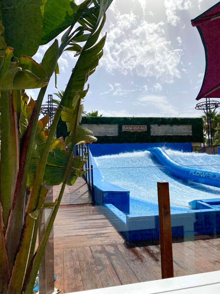 Mais ce qui rend le BAM BU KU vraiment unique, c’est sa machine à vagues artificielles. Que vous soyez débutant ou surfeur confirmé, cette installation vous permettra de vous initier au surf ou de perfectionner votre technique dans des conditions sûres et contrôlées. Accessible aux enfants à partir de 8 ans , le Flow Rider propose des cours d’une heure pour une trentaine d’euros environ. Mes filles de 8 et 10 ans ont vraiment passé un super moment et je crois que c’est leur meilleur souvenir de notre séjour à Ibiza 🙂