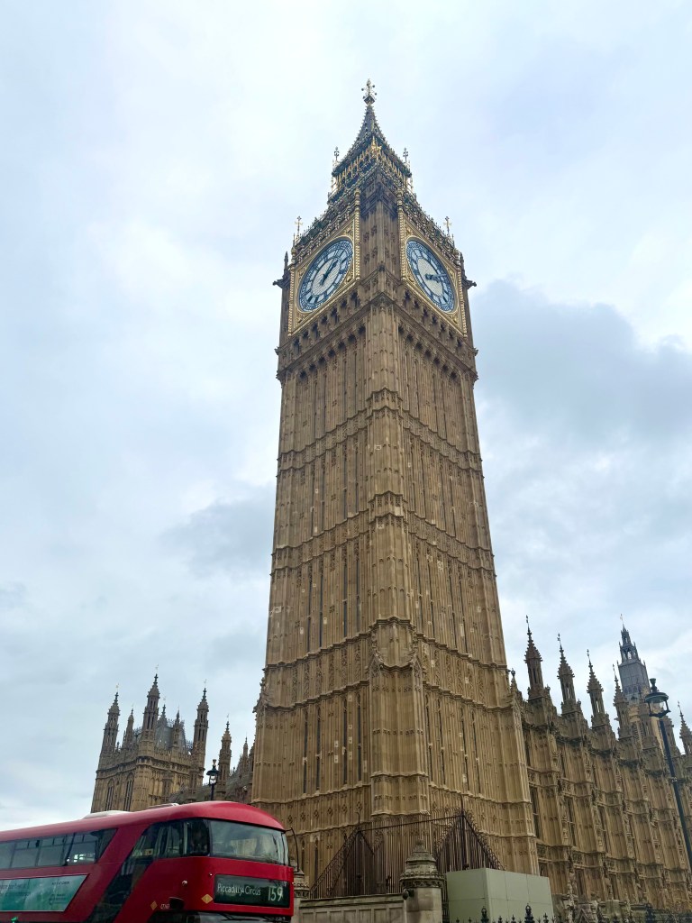 Après avoir mangé à Borough Market, nous avons pris le métro en direction de Big Ben, qui est à seulement 2 stations sur la ligne Jubilee Line. L’arrêt est Westminster. Dès la sortie du métro, on se retrouve directement face à Big Ben ! La tour, officiellement appelée Elizabeth Tower, fait partie du Palais de Westminster, un magnifique exemple d’architecture néo-gothique du XIXe siècle. Les détails sculptés, la symétrie et l’élégance de la tour en font une véritable œuvre d’art.