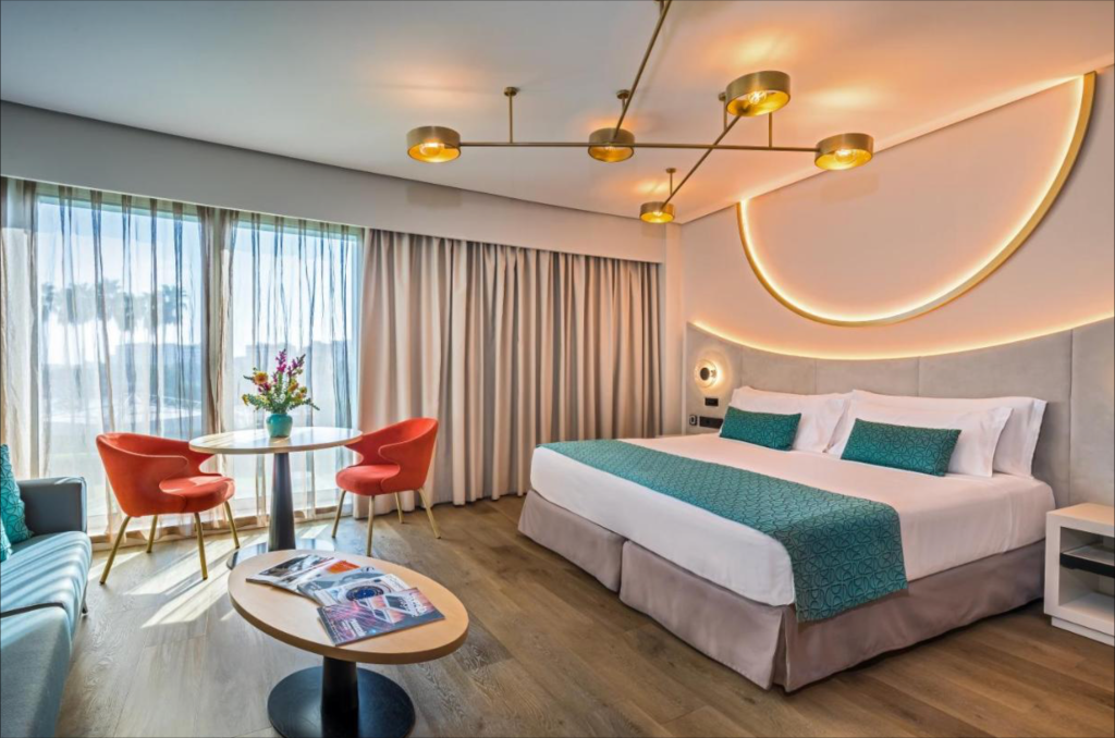 Le Barceló Sevilla Renacimiento, avec son architecture futuriste inspirée du célèbre Guggenheim, est un hôtel moderne et élégant. Situé sur les rives du Guadalquivir. il se distingue par ses trois bâtiments circulaires emblématiques et ses installations de loisirs complètes : piscine extérieure, piscine intérieure chauffée accessible toute l’année, salle de sport bien équipée et service de massages sur demande. Les familles apprécieront particulièrement sa proximité avec le parc d’attractions Isla Mágica, situé à seulement 500 mètres.