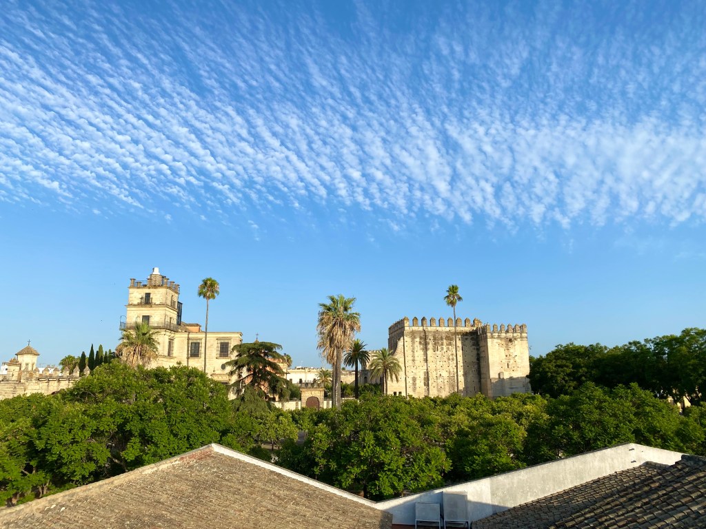 L’origine de l’Alcazar remonte au Xe siècle, lorsque les Omeyyades d’Espagne y construisirent une forteresse musulmane. Après la Reconquête, les rois catholiques firent transformer et agrandir le palais, tout en conservant de nombreux éléments de style mudéjar – ce style architectural propre à l’Espagne chrétienne, influencé par l’art islamique. Le résultat est un ensemble somptueux de salles décorées de stucs ciselés, de faïences colorées, de plafonds en bois sculpté et de patios aux fontaines murmurantes.